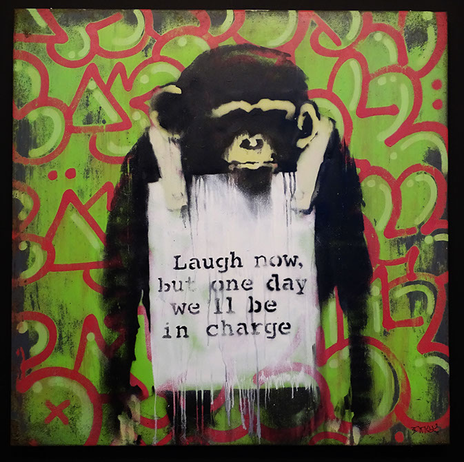 Banksy (1974?). Keep it real Monkey, 2003. Moco Museum Amsterdam.