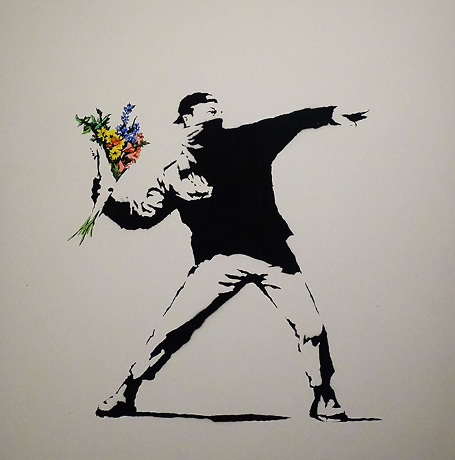 Banksy (1974?). Love is in the air (Flower Thrower), 2005. Private Collector. Moco Museum Amsterdam.