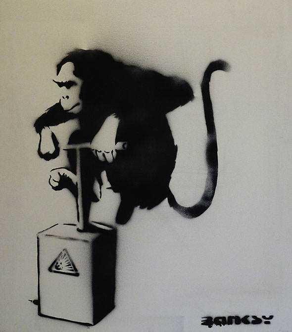 Banksy (1974?). Monkey Detonator, 2002. Moco Museum Amsterdam.
