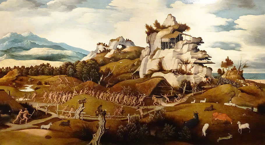 Jan Jansz Mostaert (1474-1552). Landscape with an Episode from the Conquest of America, 1535.