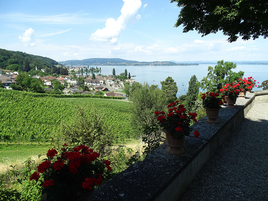 Die königliche Villa, umgeben von Rebbergen und Parkanlagen.