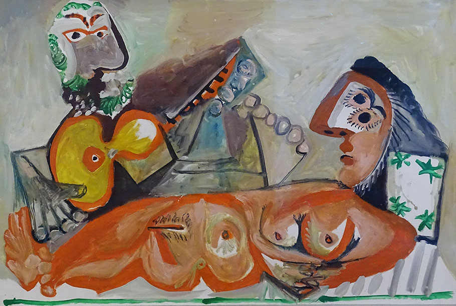 Pablo Picasso (1881-1973). Nu couché et homme jouant de la guitar, 1970. Musée National Picasso, Paris.
