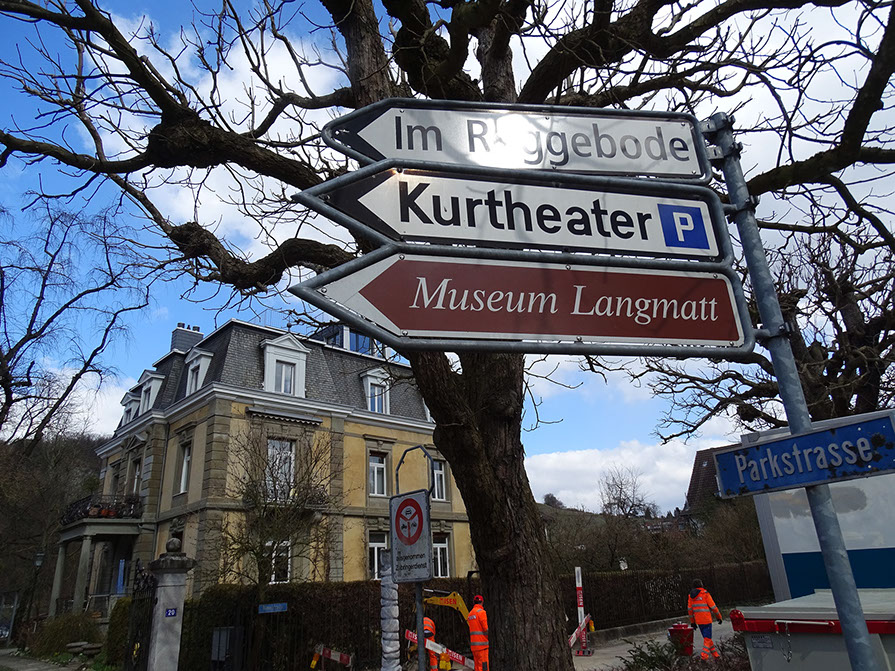 Die 1957 abgerissene Römerburg. Im Hintergrund die Villa Langmatt. Foto von 1902.