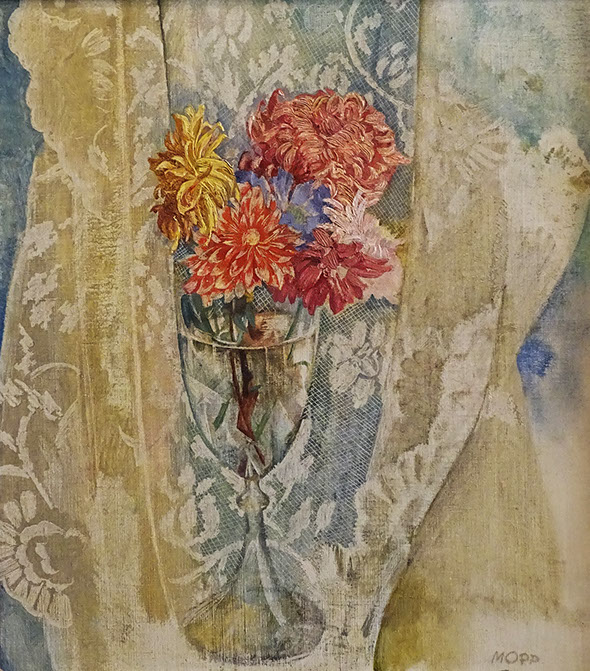 Max Oppenheimer (1885-1954). Chrysanthemen vor einem Spitzenvorhang, 1917.