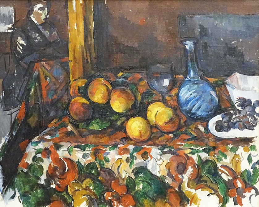 Paul Cézanne (1839-1906). Pfirsiche, Karaffe und Figur, 1900.