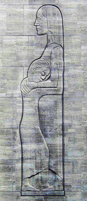 1931-Ernst Barlach (1870-1938). Hamburger Ehrenmal, Trauernde Mutter mit Kind, Relief, 1931. Rekonstruktion 1949.