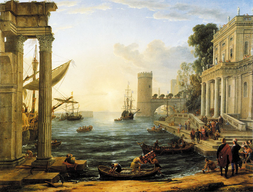 1648-Claude Lorrain (1600-1682). Seehafen mit Einschiffung der Königin von Saba, 1648. National Gallery London.