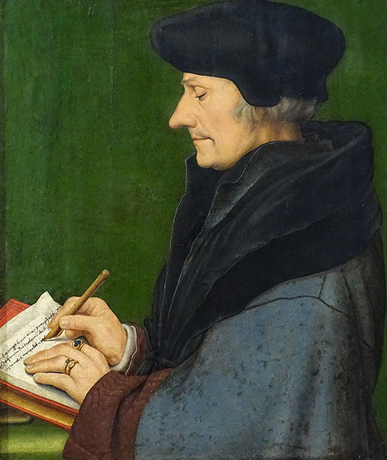 Hans Holbein d.J. (1497-1543). Bildnis des schreibenden Erasmus von Rotterdam, 1523.