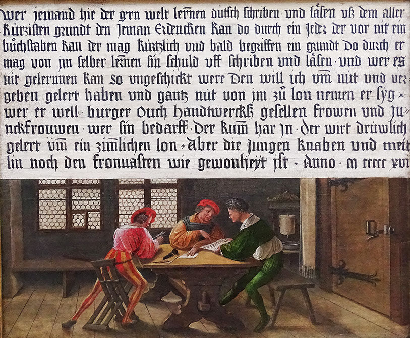 Hans Holbein d.J. (1497-1543). Schulmeisterschild, die Erwachsenenseite der heute gespaltenen Tafel, 1516.