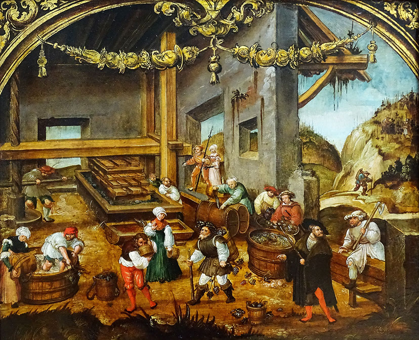 Hans Wertinger (1465-1533). Weinlese und Keltern, Monatsbild für den September, 1516-25.