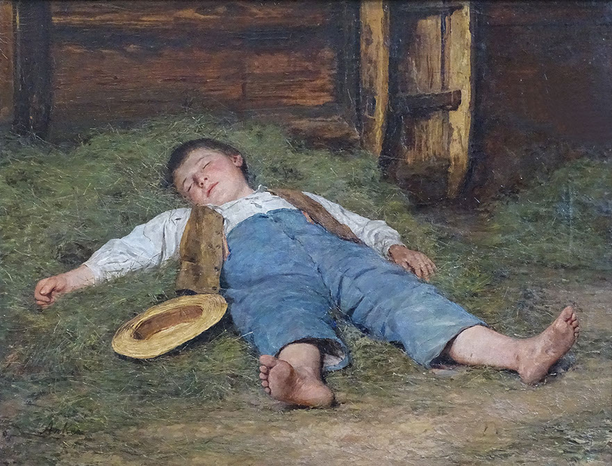 Albert Anker (1831-1910). Schlafender Knabe im Heu, 1897.