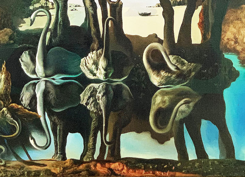 Salvador Dalì (1904-1989). Cygnes se reflétant en éléphants, 1937. Detail. Sammlung Esther Grether.
