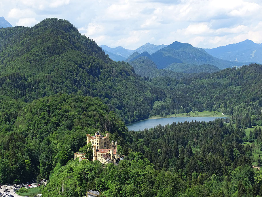 Blick auf Alpsee und Schloss Hohenschwangau (Residenz von König Maximilian II).