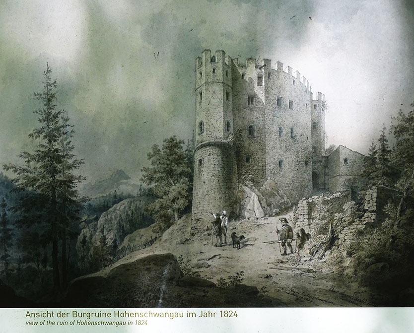 Burgruine Hohenschwangau im Jahr 1824 vor der Errichtung des Schlosses.