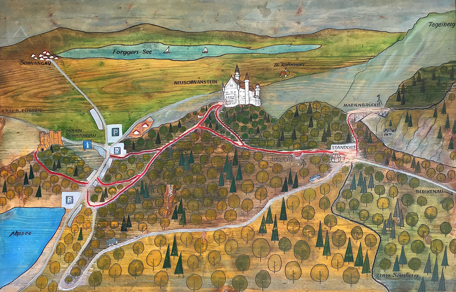 Hohenschwangau (Maximilian II), Neuschwanstein, Linderhof, Herrenchiemsee (Ludwig II).