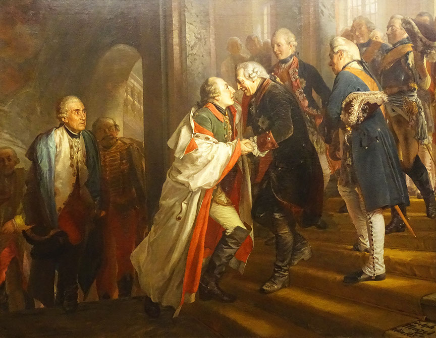 Adolph Menzel (1815-1905). Begegnung Friedrichs II mit Kaiser Joseph II in Neisse im Jahr 1769, 1857.