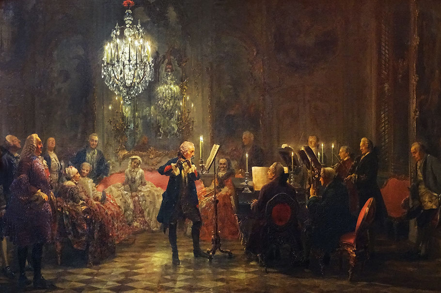 Adolph Menzel (1815-1905). Flötenkonzert Friedrichs des Grossen in Sanssouci, 1850-52. Detail.