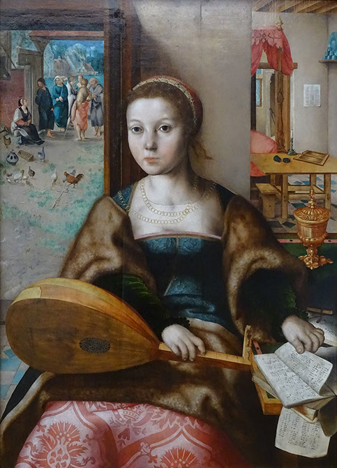 Jan Sanders van Hemessen (1500-1566). Maria Magdalena, im Hintergrund Christus bei Martha.