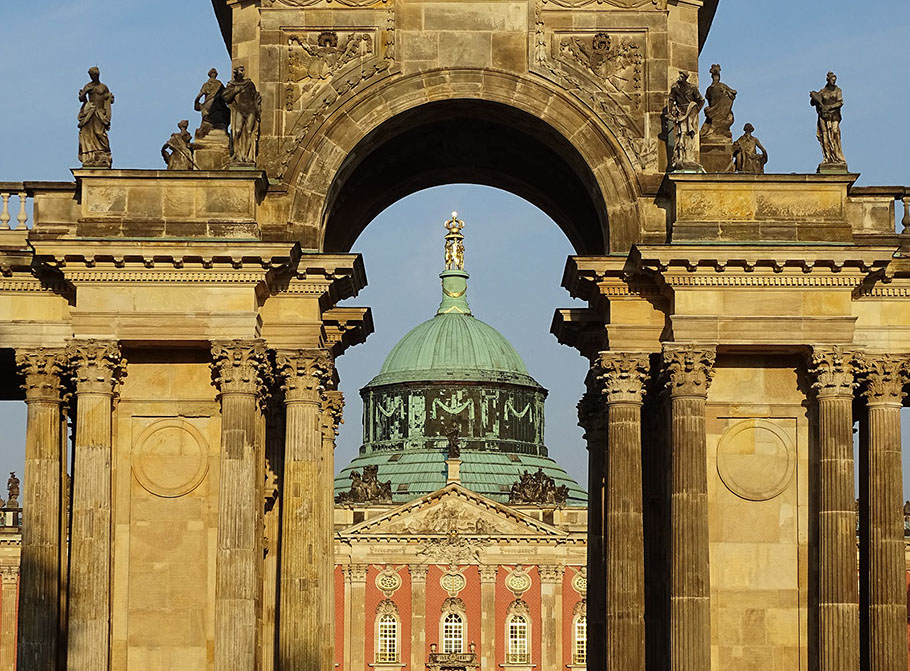 Das Neue Palais durch den Bogen der Potsdamer Universität gesehen.