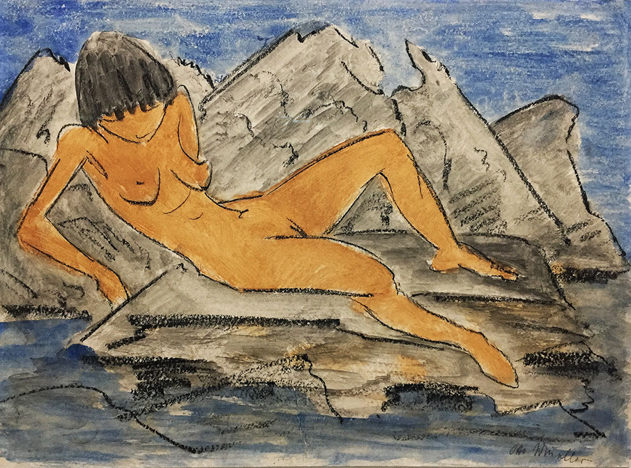 Otto Mueller (1874-1930). Liegender weiblicher Akt am Wasser.