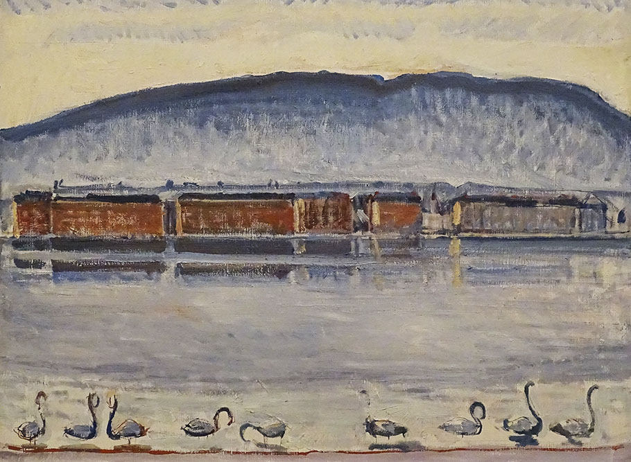 1918-Genfersee mit Mont-Blanc und Schwänen, 1918. Detail. Musées d'art et d'histoire, Genève.