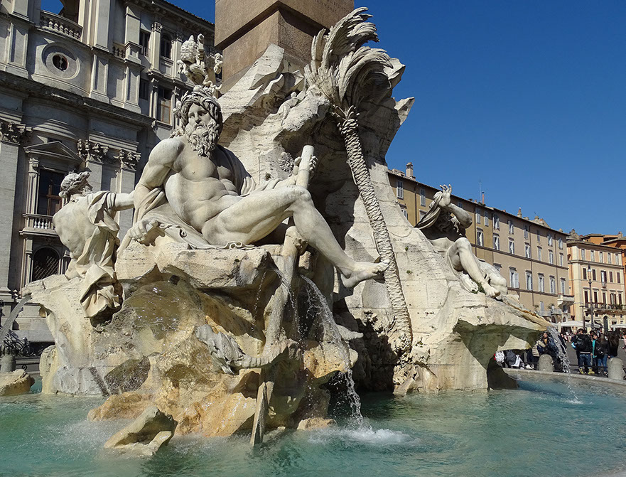 1651-Gianlorenzo Bernini (1598-1680). Fontana dei quattro fiumi, 1651. Detail. Piazza Navona, Rom.
