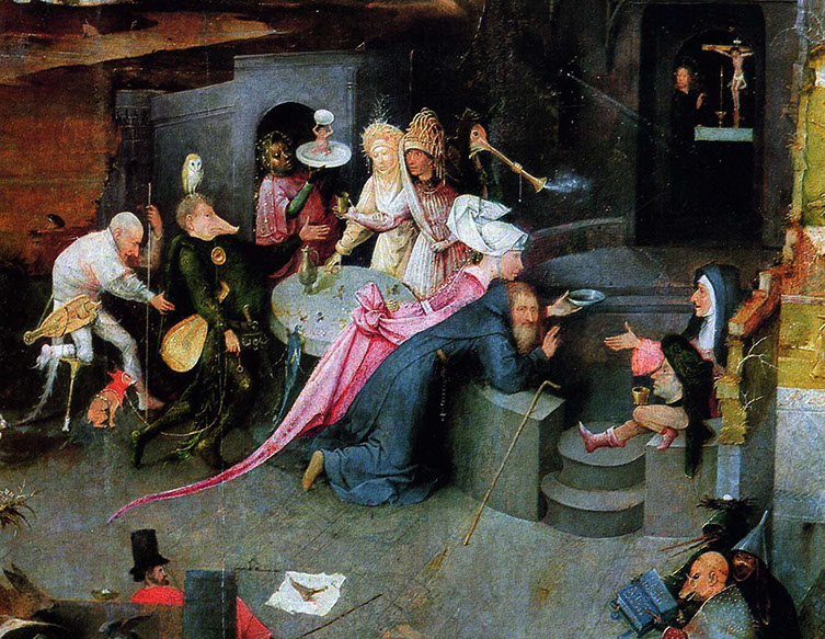 1495-Hieronymus Bosch (1450-1516). Die Versuchung des hl. Antonius, 1495-1515. Detail. Arte Antiga, Lisboa.