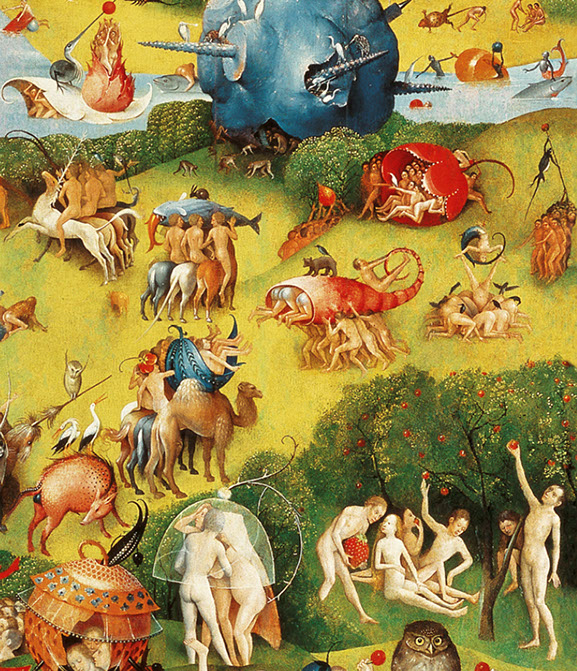 1500-Hieronymus Bosch (1450-1516). Der Garten der Lüste, 1500-1505. Paradies, Detail. Museo del Prado, Madrid.
