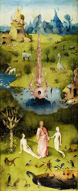 1490-Hieronymus Bosch (1450-1516). Weltgerichts-Triptychon, 1490-1505. Linker Flügel: Paradies. Akademie Wien.