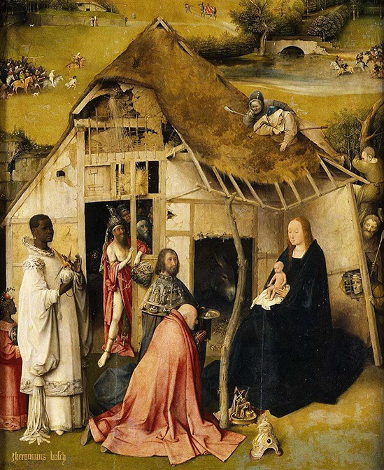 1510-Hieronymus Bosch (1450-1516). Anbetung der Könige, 1510. Ausschnitt. Museo del Prado Madrid.