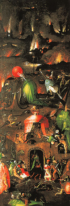 1500-Hieronymus Bosch (1450-1516). Der Garten der Lüste, 1500-1505. Rechter Flügel. Museo del Prado, Madrid.