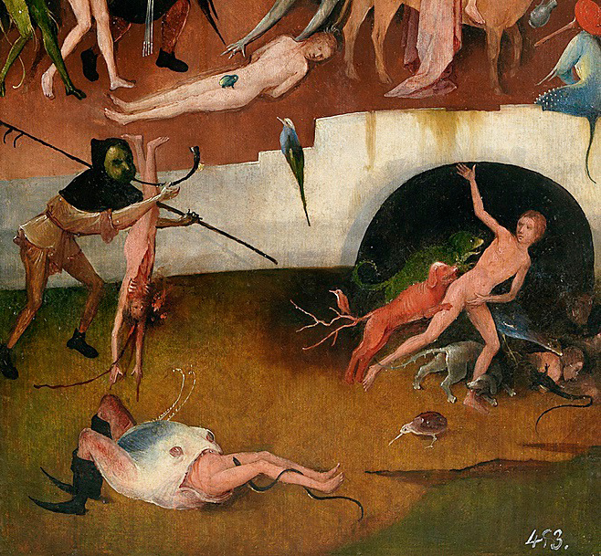 1500-Hieronymus Bosch (1450-1516). Der Garten der Lüste, 1500-1505. Rechter Flügel. Detail. Museo del Prado Madrid.