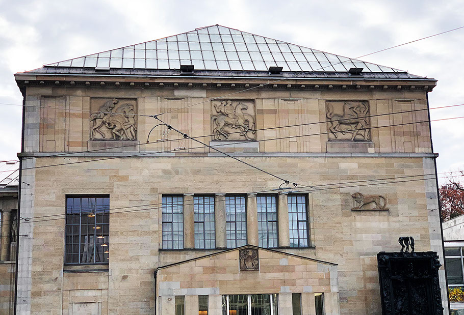 1909-Carl Burckhardt (1878-1923). Kunsthaus Zürich, Hauptfassade. Metopen Amazonenkämpfe.