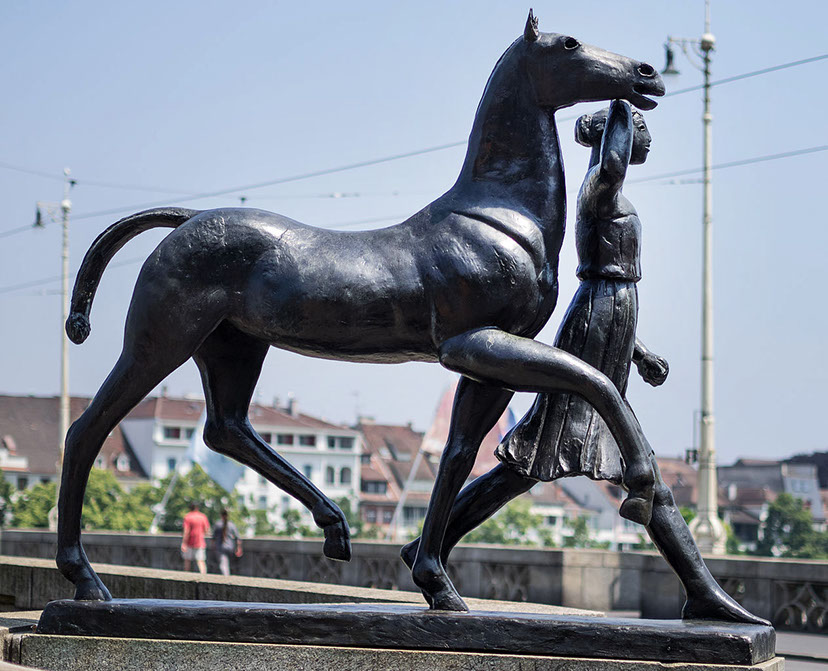 1926-Carl Burckhardt (1878–1923). Amazone mit Pferd, 1926. Schifflände Basel. Foto Dr. Nachtigaller, WikiCommons.