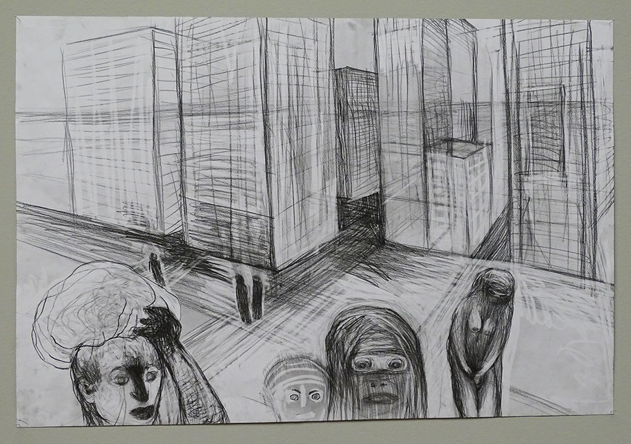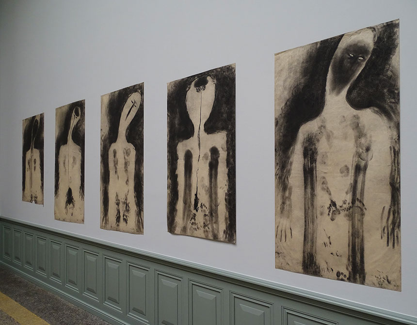 Ausstellung «Miriam Cahn – Ich als Mensch» im Kunstmuseum Bern, vom 22.2. bis 16.6.2019. Schwarz-weiss-Arbeiten.