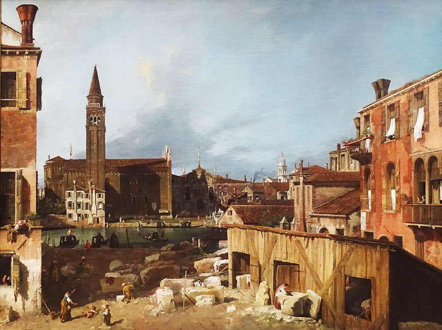 1728-Canaletto (1697-1768). Venice, Campo S. Vidal and Santa Maria della Carità, 1728. National Gallery London.