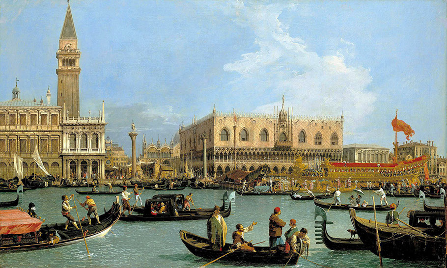 1733-Canaletto (1697-1768). The Bacino di San Marco on Ascension Day, 1733-34. Royal Collection, Kensington.