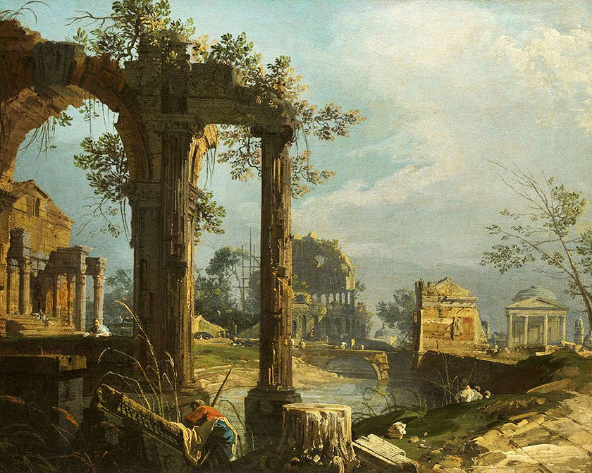 1742-Canaletto (1697-1768). Capriccio mit Ruinen, 1742-44. Royal Collection, Kensington.
