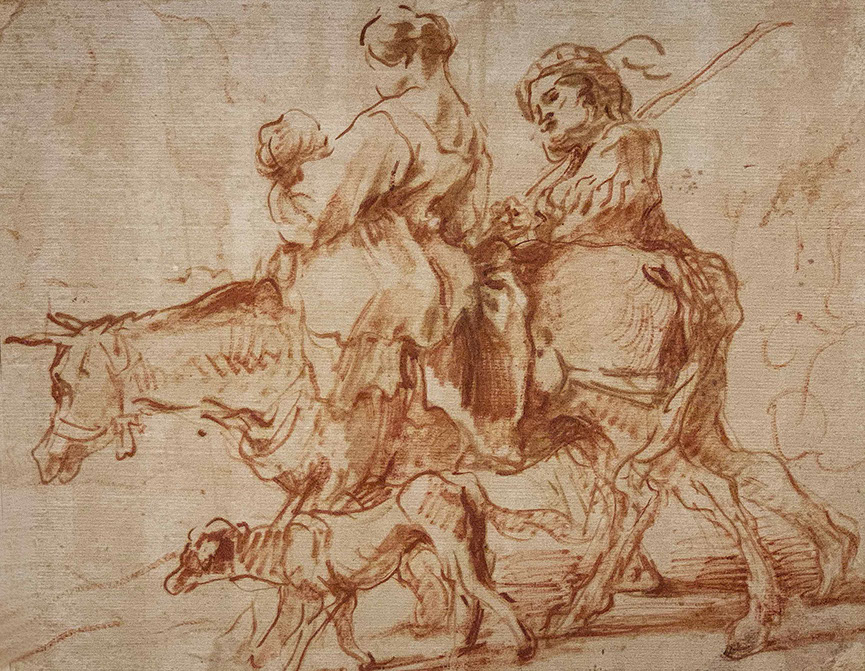1635-Castiglione (1609-1664). Frau mit Kind auf Esel, Mann zu Fuss nebenher, 1635-40. Städel Museum, Frankfurt.