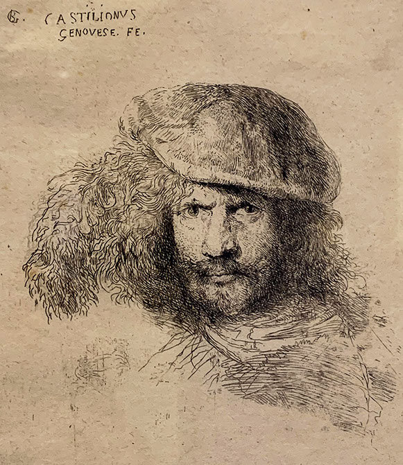 Giovanni Benedetto Castiglione (1609-1664). Vermutliches Selbstbildnis, um 1640. Radierung. Musée Jenisch Vevey.