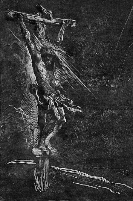 1650-Castiglione (1609-1664). Christus am Kreuz, 1650-55. Monotypie auf Papier. Bibliothèque nationale de France, Paris.