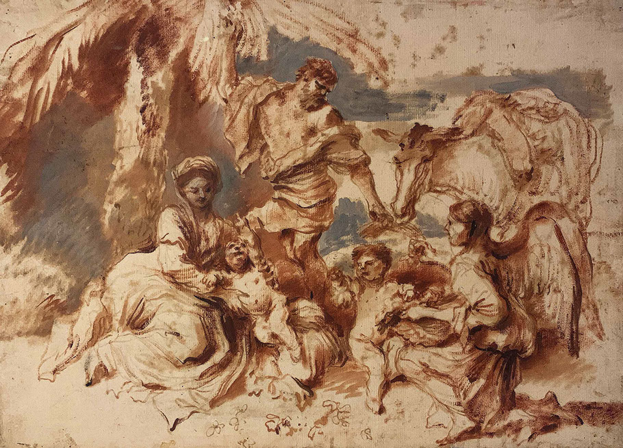 1660-Giovanni Benedetto Castiglione (1609-1664). Noah leitet die Tiere in die Arche, 1660. Skizze. Kunsthaus Zürich.