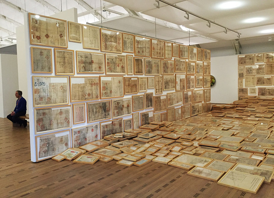 Installation chinesischer Bilder im Paul Klee Zentrum.