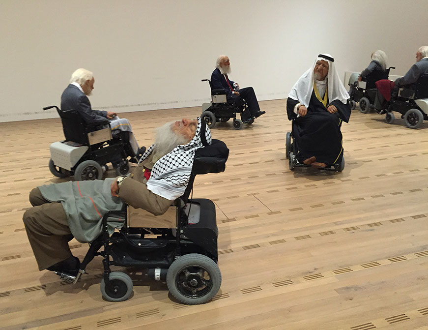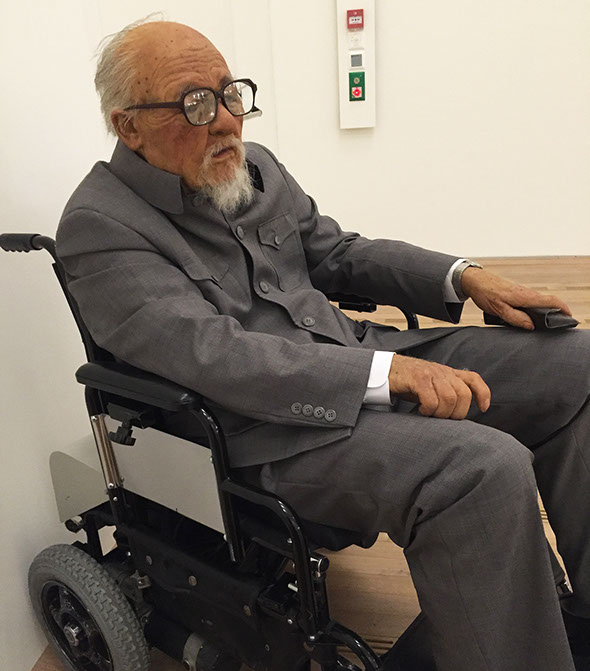 Installation «Old People's Home» von Sun Yuan und Peng Yu. Hilflos im Rollstuhl. Die «Puppen» sind sehr...