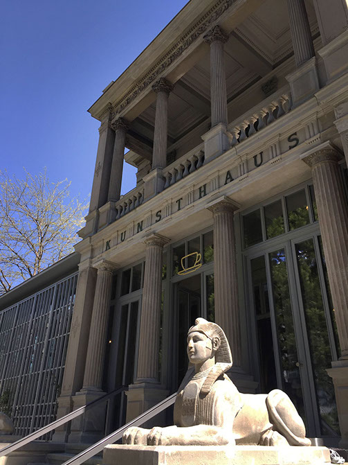 Hier gehts nur zum Café, der Eingang zum Kunsthaus ist im neuen Gebäude, im angrenzenden Kubus...