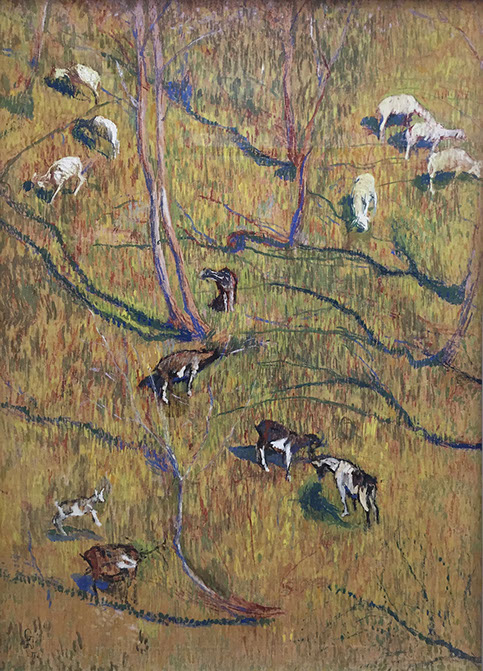 Giovanni Giacometti (1868-1933). Sonniger Hang mit Ziegen und Schafen, 1900. Bündner Kunstmuseum Chur.