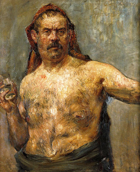 1907-Lovis Corinth (1858-1925). Selbstporträt mit Glas, 1907. WikiArt.