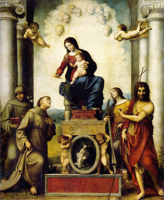 1514-Correggio (1489-1534). Madonna di San Francesco, Altarbild, 1514. Gemäldegalerie Alte Meister, Dresden.