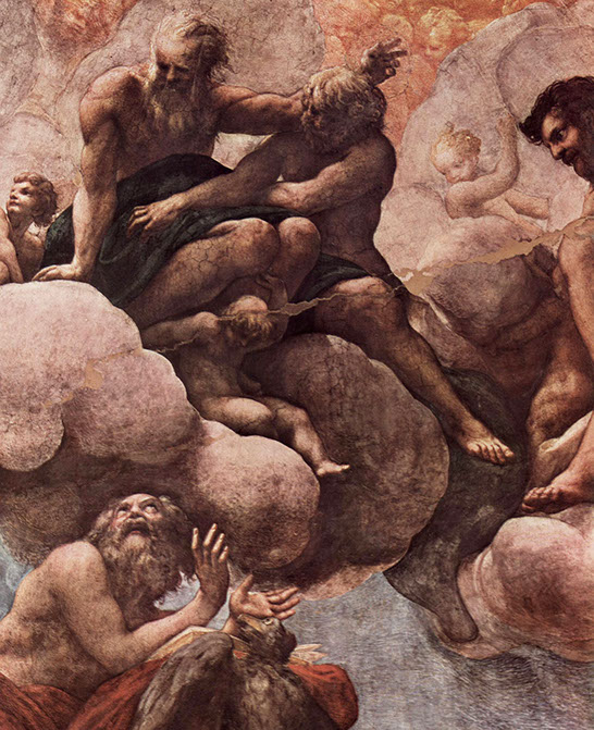 1520-Correggio (1489-1534). Vision des hl. Johannes auf Patmos, 1520-23. Detail. San Giovanni Evangelista, Parma.