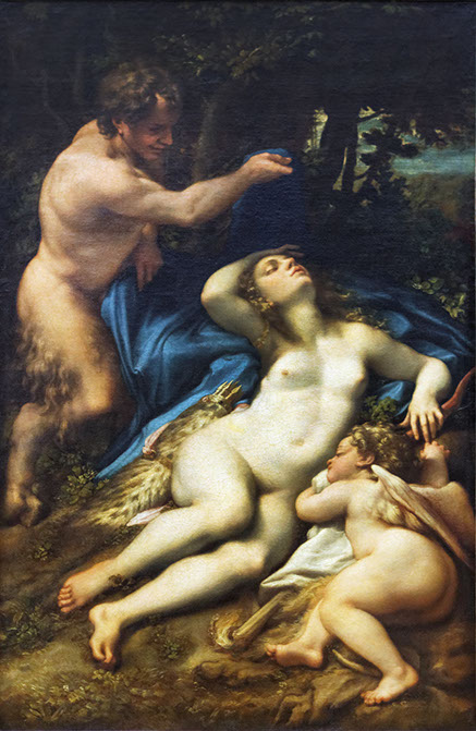 1524-Correggio (1489-1534). Satyr, Venus und Amor, 1524-27. Musée du Louvre, Paris.